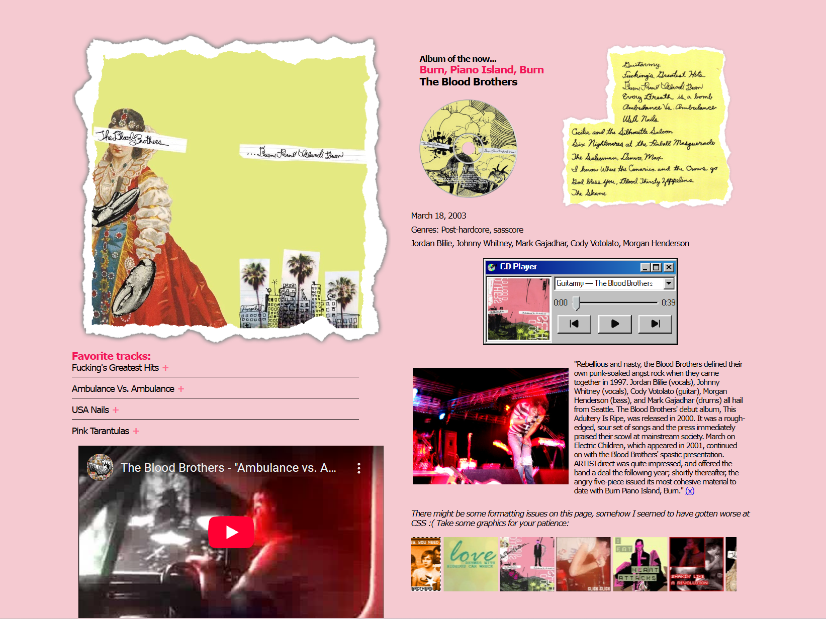 February 22, 2026: Album of the now: Burn, Piano Island, Burn by The Blood Brothers. "Congratulations, you're fucking's greatest hit!!!"